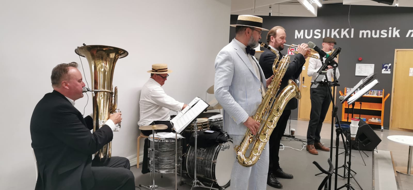 Musiikkimme on sekoitus ajattomia jazz-klassikoita ja uudempia hittejä jazz-tyyliin sovitettuna. Soitamme taustamusiikkia, joka luo hienostuneen ilmapiirin, mutta tarvittaessa nostamme tempoa ja saamme yleisön tanssilattialle.